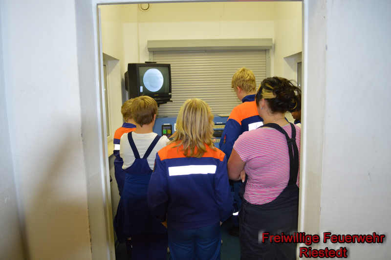 Am Mittwoch, den 26.09.2012 ergab sich für unsere Jugendfeuerwehr die Möglichkeit, die Atemschutzteststrecke in der FTZ zu besichtigen. Da 3 Kameraden unserer Feuerwehr die Teststrecke besuchen mussten, konnten die Jugendlichen auch gleich ihr Können unter beweiß stellen. Nach einer kleinen Erklärung, was man hier alles tun muss und wie die Teststrecke aufgebaut ist, konnte unsere Jugend ihre nachgebauten Atemschutzgeräte aufsetzen und die Teststrecke bewältigen. So konnten sie mal sehen, wie kraftaufwendig ein Einsatz unter Atemschutz sein kann.