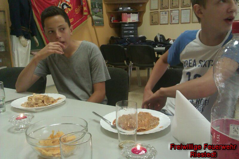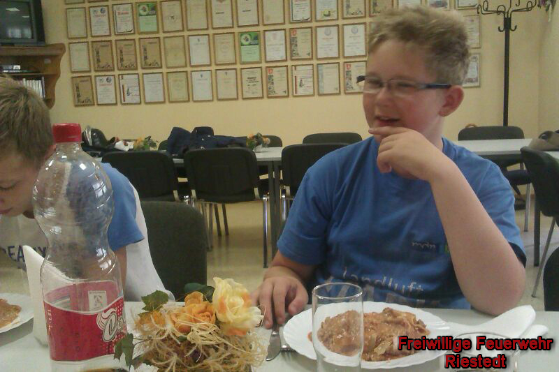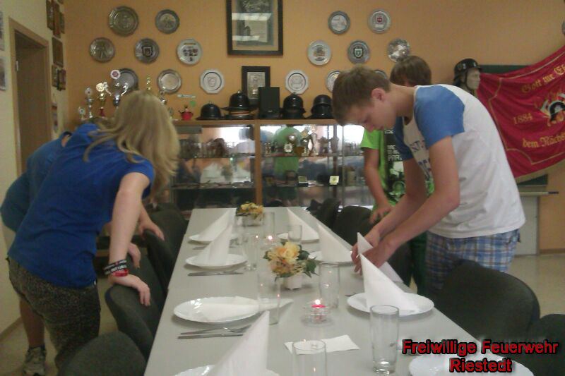 Zum letzten Ausbildungsdienst am Mittwoch, den 03.07.2013 zeigten die Jugendlichen, dass sie nicht nur Schläuche ausrollen können oder sich mit den Geräten der Feuerwehr auskennen, denn an diesem Tag wurde gekocht. Die Idee kam von Mitgliedern unserer Jugend beim Zeltlager der Jugendfeuerwehren am Stausee in Kelbra und so wurden alle Zutaten für eine leckere Bolognese gekauft. Neben der Bolognese wurde auch von den Jugendlichen auf die Tischdeko geachtet, anschließend so wurde dann in einer gemütlichen Runde gegessen.