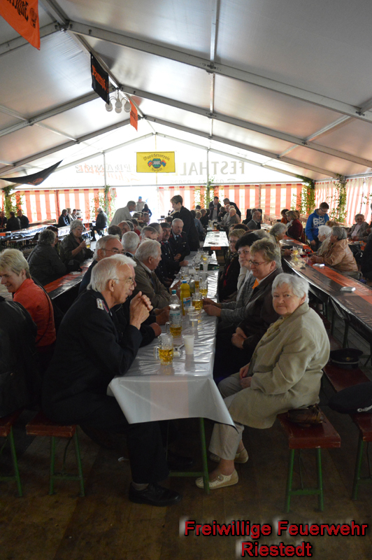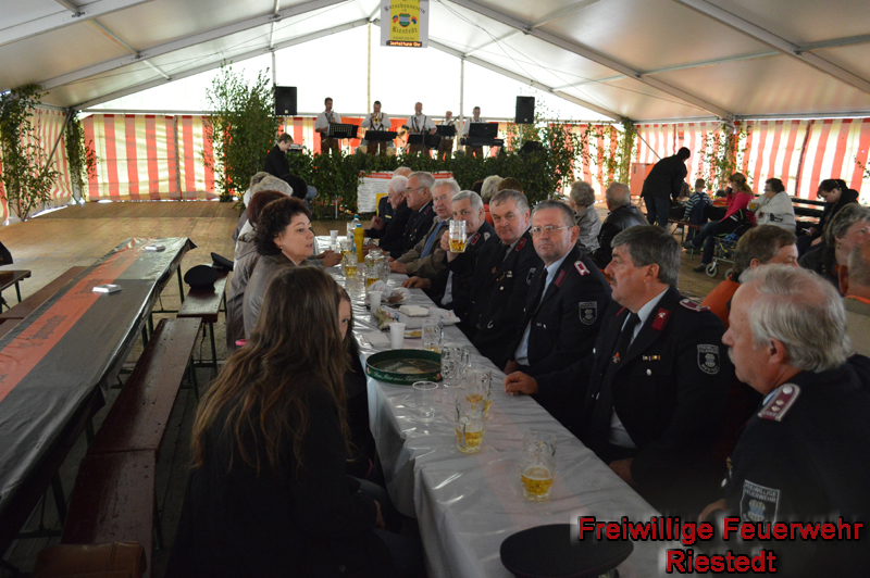 Auch in diesem Jahr lautet das Motto der Freiwilligen Feuerwehr Riestedt zu Pfingstmontag "Erst die Arbeit, dann das Vergnügen!". Nach einer erfolgreichen Einsatzübung heute morgen um 8:00 Uhr, trafen sich einige der Kameraden im Festzelt des Burschenvereins Riestedt, um in einer gemütlichen Runde beim Frühschoppen sitzen zu können. Währenddessen konnte man der Musik von den Gonnataler Spatzen zuhören.