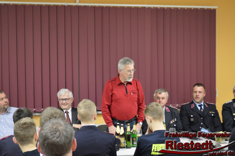 Als alle Grußworte ausgesprochen waren, verschaffte ein Mitglied unserer Jugendfeuerwehr einen Rückblick über das, was unsere Jugendlichen im Jahr 2014 gemacht und erlebt haben. Dabei berichtete er über die Renovierung des Jugendraumes, über den Tag der offenen Tür am 1. Mai und die durchgeführte Schauübung sowie über den erreichten 1. Platz beim Stadtausscheid. Auch der Vorsitzende unseres Fördervereines wollte noch ein paar Worte los werden, wo er sicher unter anderem für die geleistete Arbeit beim Leistungsmarsch der Kreisjugendfeuerwehr Mansfeld-Südharz im vergangenem Jahr, welcher in gemeinsamer Arbeit unserer Wehr, des Fördervereins sowie den Mitgliedern der Kreisjugendfeuerwehr organisiert wurde, bedankte.