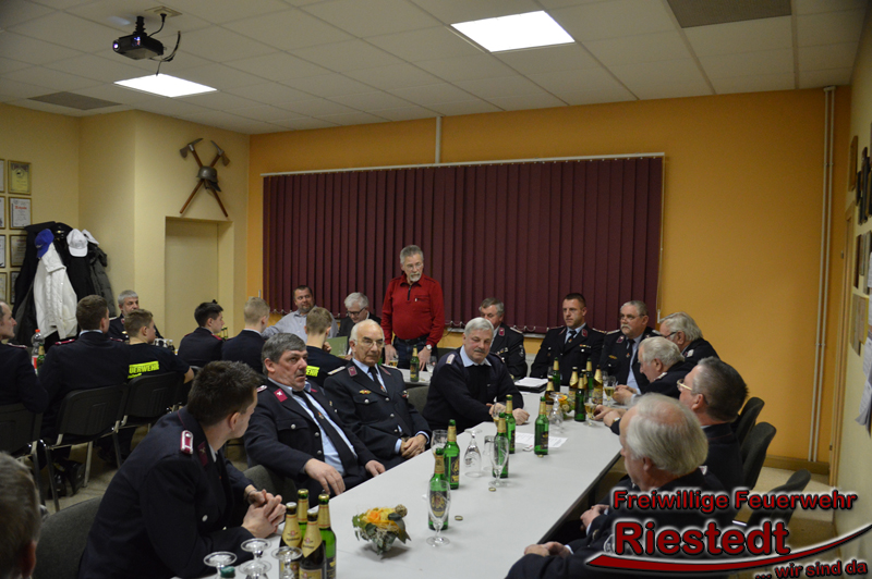 Nachdem eine Gedenkminute für all die verstorbenen Kameradinnen und Kameraden gehalten wurde, folgte die Verlesung des Rechenschaftsberichtes für das Jahr 2014 durch unseren Wehrleiter sowie die Verlesung des Arbeitsplanes für 2015. Im Anschluss folgten die Grußworte unserer Gäste. Dabei bekam unsere Wehr Dank und Anerkennung für die geleistete Arbeit sowie für die ständige Einsatzbereitschaft im vergangenem Jahr. Des Weiteren kündigte unserer Abschnittsleiter Ronald Hahn an, dass unsere Wehr ab diesem Jahr mit in die Kreisfeuerwehrbereitschaft des Landkreises Mansfeld-Südharz integriert wird.
